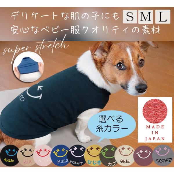 名入れ ニコちゃん刺繍 伸縮性抜群 犬服 ドッグウェア dogwear タンクトップ(S.M.L)2998