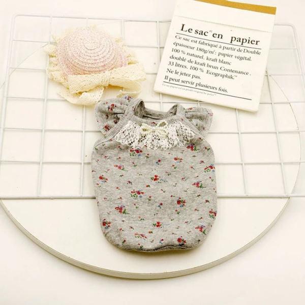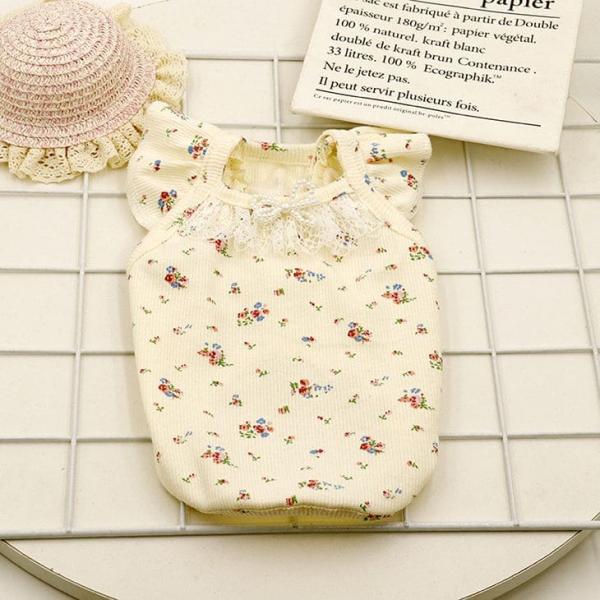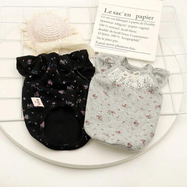 【新規】超可愛い! 秋服 小花柄 リボン パール モノトーン カットソー トップス 重ね着 犬用 猫用 おしゃれ ドックウエア【a352】【送料無料】