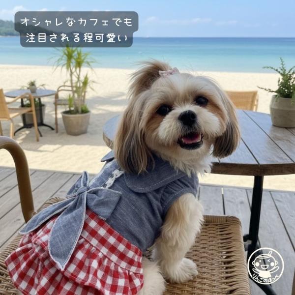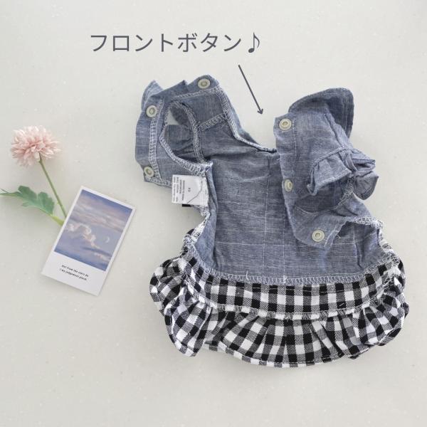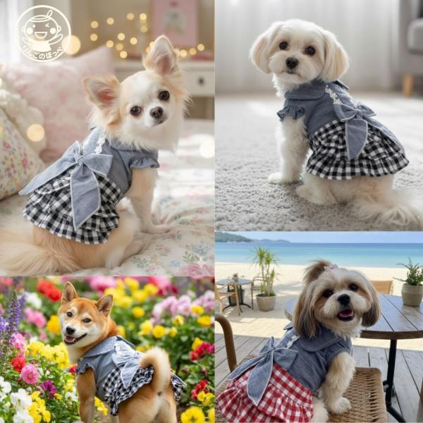 犬の服 秋 春 夏 ワンピース 猫 ねこ おしゃれ 犬 服 かわいい ペット服 ドッグウェア洋服 チェックデニムスカート ペットグッズ専門店 りんごのほっぺ