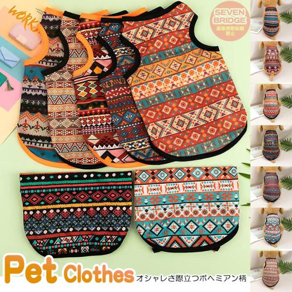 犬 猫 服 ウェア タンクトップ ボヘミアン 涼しい ペット ドッグ ドッグウェア メッシュ 小型犬 中型犬 春 夏 秋 冬