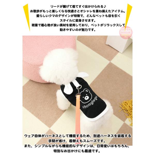 犬 猫 リードが繋げる ウェア タンクトップ クマ 軽量 快適 犬服 ウェアハーネス ドッグウェア ペット 服 キャット ドッグ