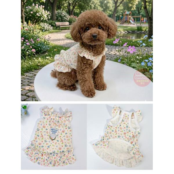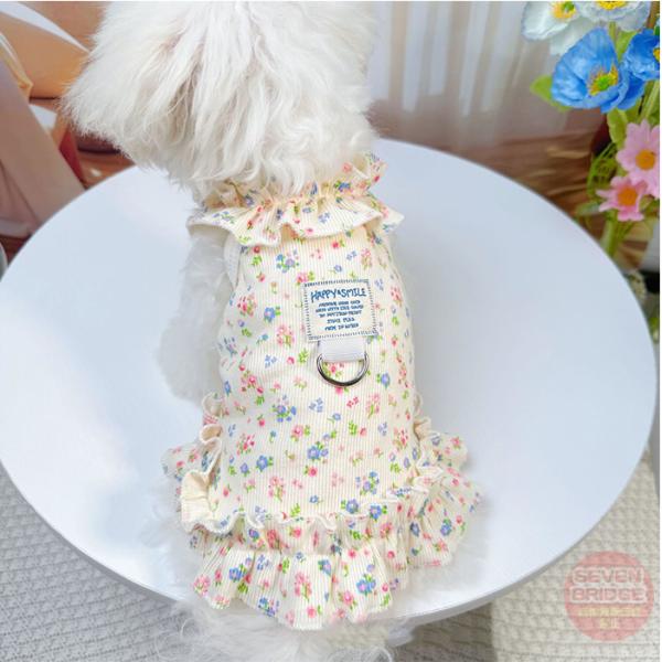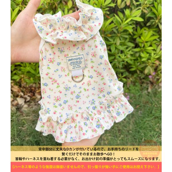 犬 猫 服 犬服 ワンピース 花柄 フリル ハーネス Dカン付 キャミソール 可愛い おしゃれ 小型犬 中型犬 リブ ドッグウェア 散歩