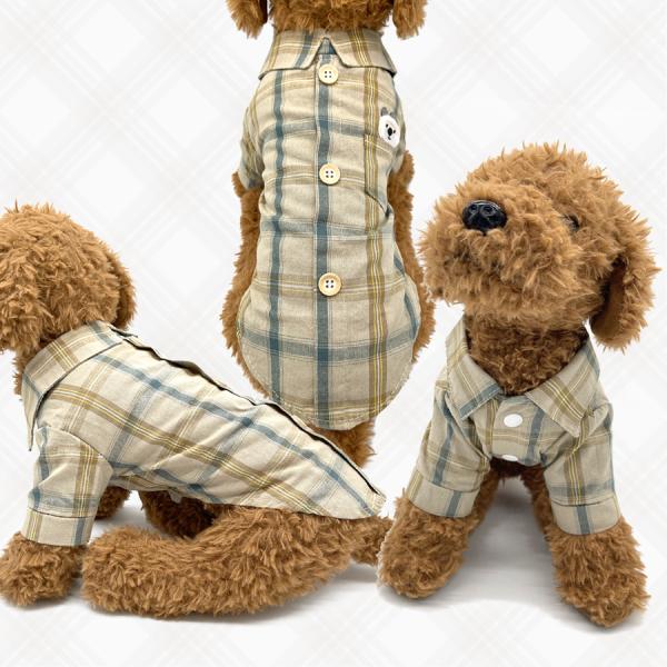 犬 服 前開き シャツ チェック柄 犬服 小型犬 中型犬 着せやすい服 かわいい 薄手 袖あり 着せやすい 洗える 洋服 犬用 襟付き ドッグウェア ペット服 爆買