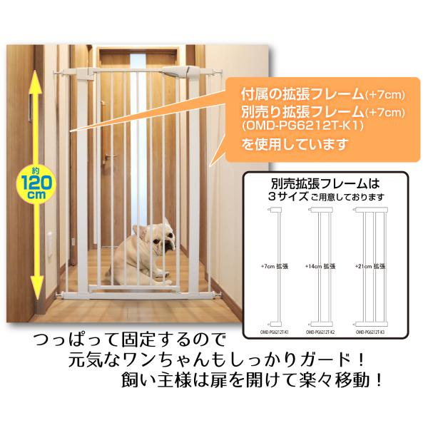突っ張りペットゲート 扉付き 高さ120cm 幅約67〜 81cm 穴あけ不要 オートクローズ 小型犬用 侵入 脱走 いたずら 防止 ブラウン ホワイト OMD-PG6212T