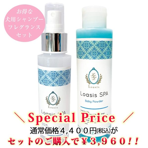 ペットの贅沢ボディケア 2種セット【ベビーパウダー】まとめ買いがお得 犬用フレグランス(1本 100ml)・リンスインシャンプー(1本 150ml ※5倍希釈OK)
