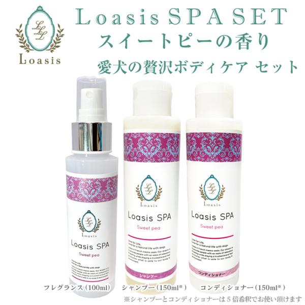 ペットの贅沢ボディケア 3種セット【スイートピー】まとめ買いがお得 犬用フレグランス(1本 100ml)・シャンプー&コンディショナー(各1本 150ml ※5倍希釈OK)