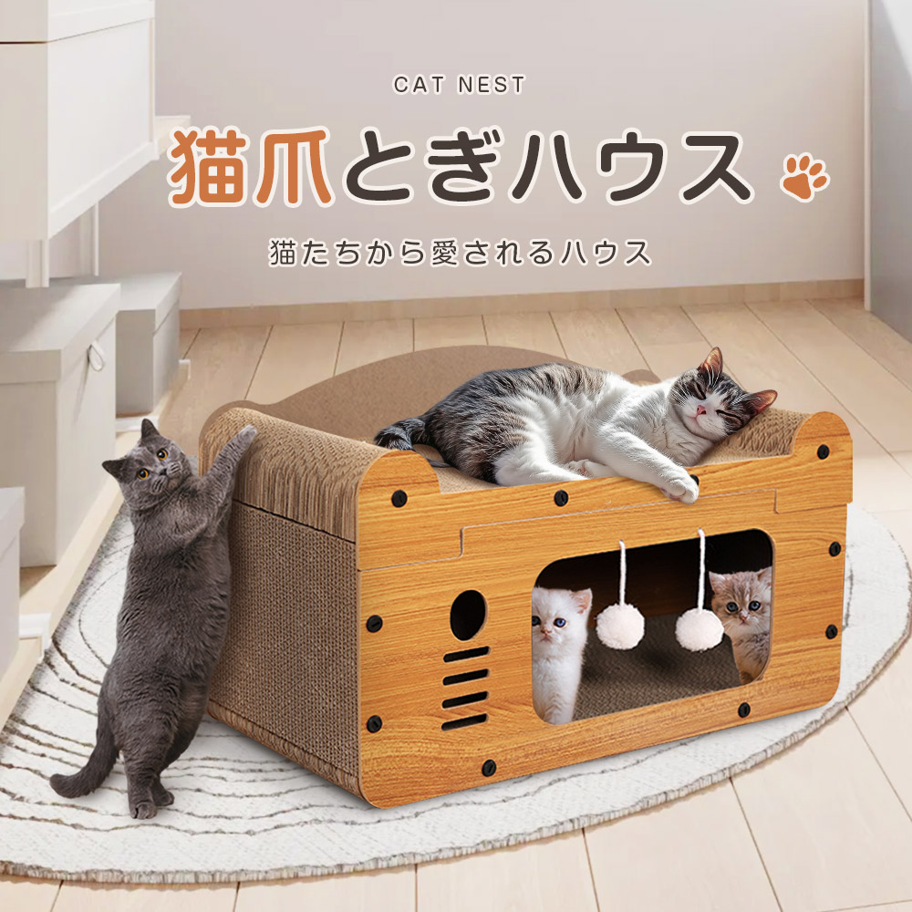 爪とぎハウス 猫ハウス 爪とぎ ダンボール 猫ベッド ペットベッド ねこ つめとぎ 爪研ぎ ベッド かわいい 通気 耐久 ストレス解消 毛玉付き 分割して使用