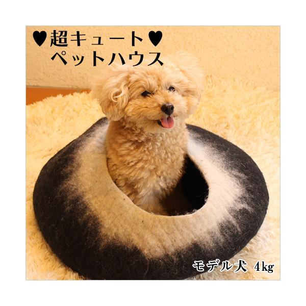 丸型グラデーション お洒落なペットハウス (ブラック×ホワイト) 犬 猫 ペット用 ベッド ハンドメイド ウール100% フェルト製 【necocoon】
