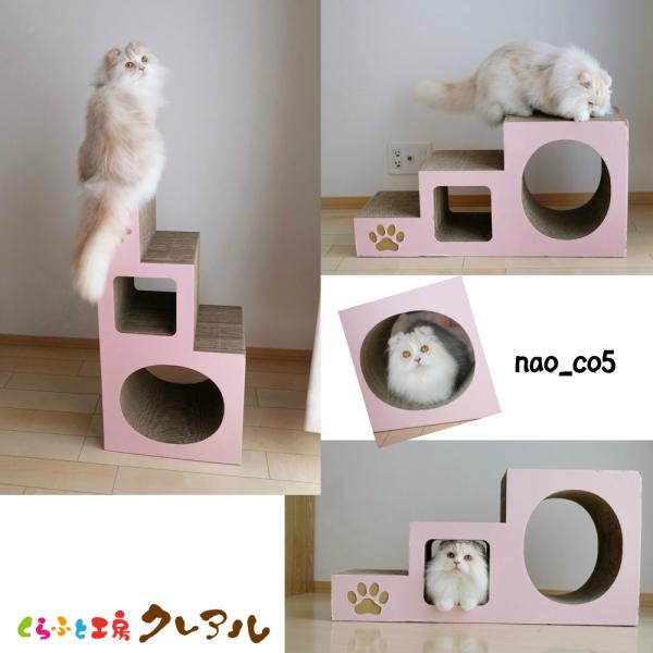 猫 爪とぎ ダンボール ステップトンネル 猫グッズ 日本製 遊び 猫用品 おしゃれ おもちゃ かわいい 階段 猫の爪とぎ