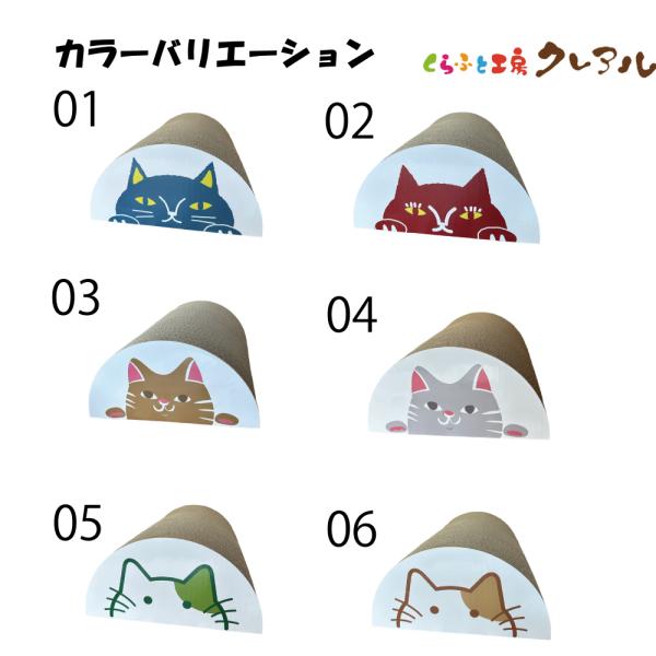 猫 爪とぎ ダンボール 半円顔出しねこちゃん くらふと工房クレアル 日本製 爪磨き 爪みがき 猫用品 おしゃれ ユニーク かわいい