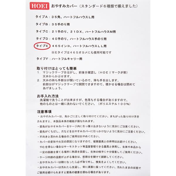 HOEI おやすみカバー タイプE 鳥ケージ用カバー 465インコ 465オカメ ハートフルハウスLLなど用