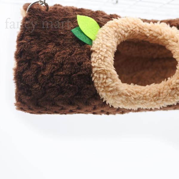 小動物 鳥 ハムスター フェレット モモンガ モルモット ハンモック 筒型 トンネル 吊るす ふわふわ 暖かい 隠れ家 茶色 遊び場 ハウス