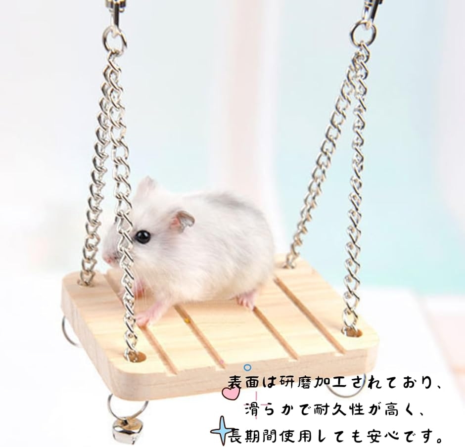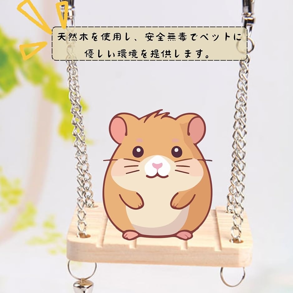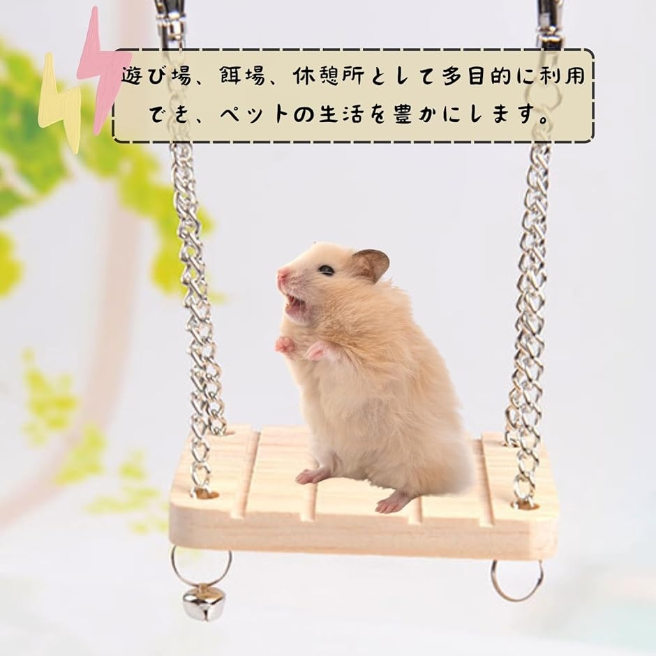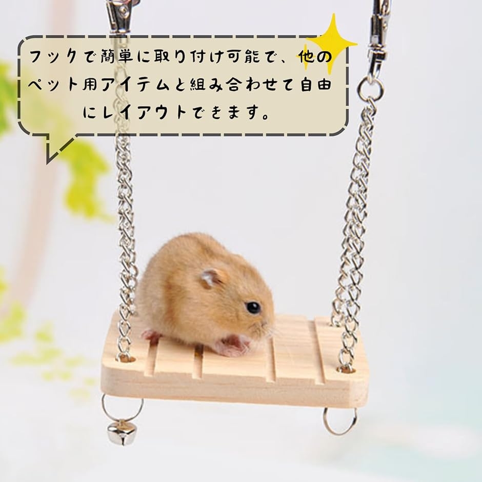 小動物用 ブランコ 木製 ハンモック 踏み台 ペットベッド 2個セット (木色)
