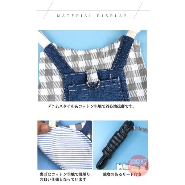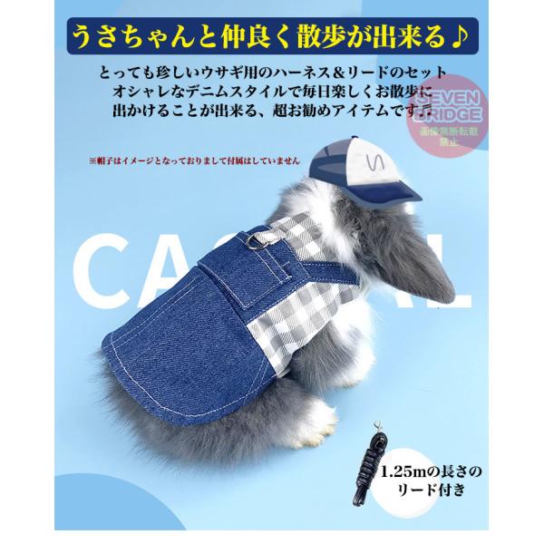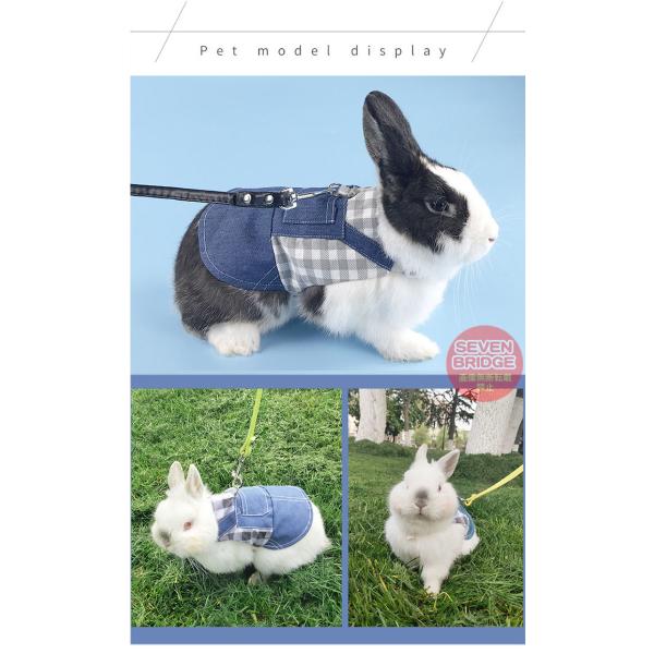うさぎ ウサギ ハーネス リード 付 小動物 モルモット フェレット チンチラ プレーリードッグ チェック ペット 服 胴輪 デニム