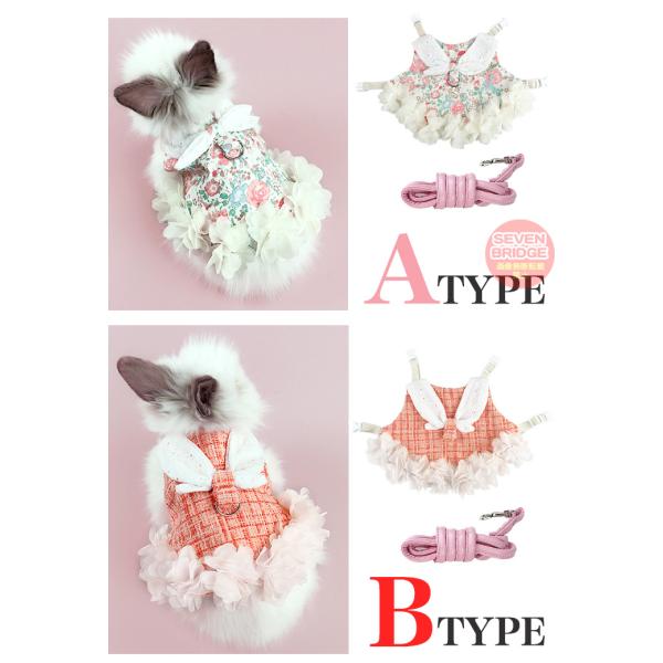 うさぎ ウサギ ハーネス リード 付 フラワー チェック 小動物 モルモット フェレット チンチラ プレーリードッグ ペット 服 胴輪