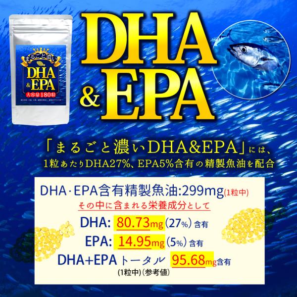 DHA EPA サプリ 約6か月分 180粒 ソフトカプセル dha epa オメガ3 必須 脂肪酸 多い 豊富 魚 青魚 成分 精製 魚油 健康 サプリメント まるごと濃いDHA&EPA