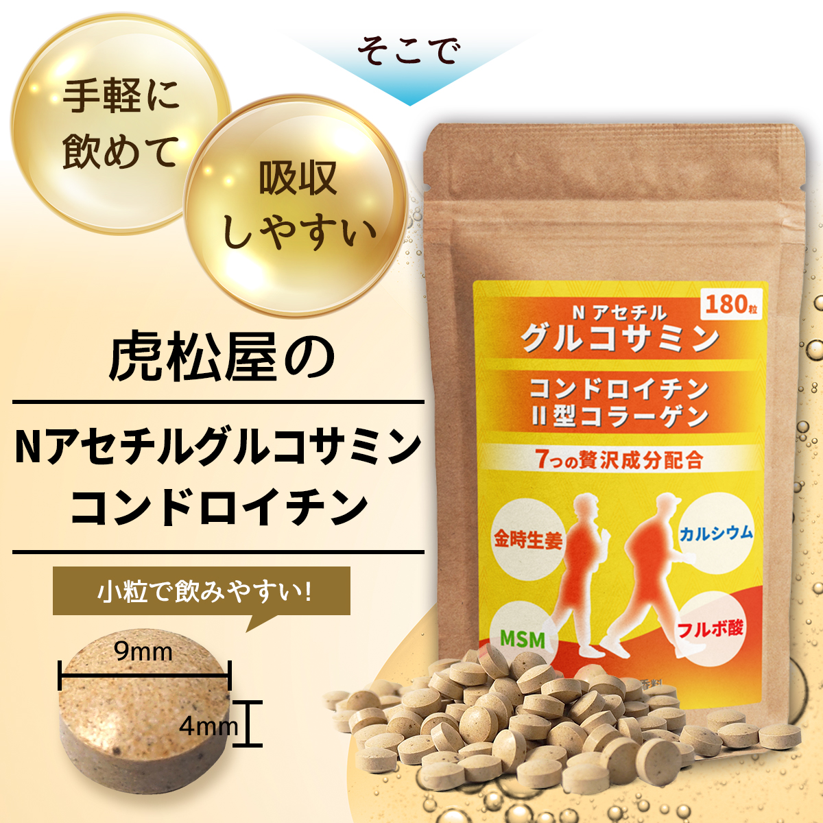 N-アセチルグルコサミン コンドロイチン & 2型コラーゲン+ 金時生姜配合180粒【送料無料】MSM グルコサミン 非変性II型コラーゲン カルシウム