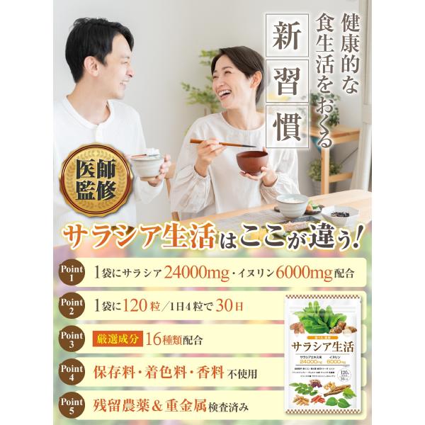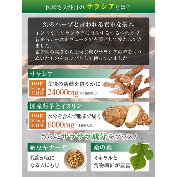 医師監修 サラシア 24000mg イヌリン 6000mg 国産菊芋 桑の葉 16種類の厳選成分 30日分 120粒 GMP国内工場製造 サラシア生活