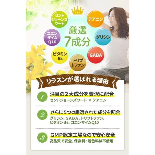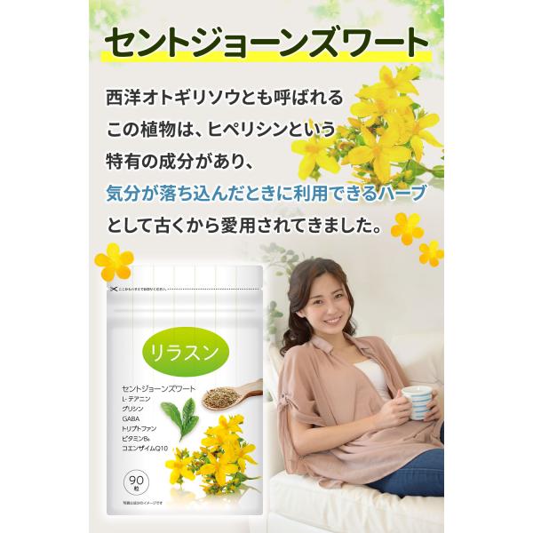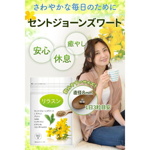 セントジョーンズワート テアニン セロトニン ストレス サプリ 休息サプリ 睡眠サプリ【リラスン】90粒