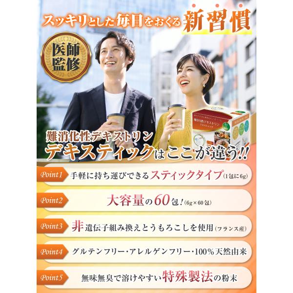 医師監修 難消化性デキストリン 個包装 大容量 6g×60包 水溶性食物繊維 すぐと溶け 持運べる スティックタイプ フランス産とうもろこし デキスティック