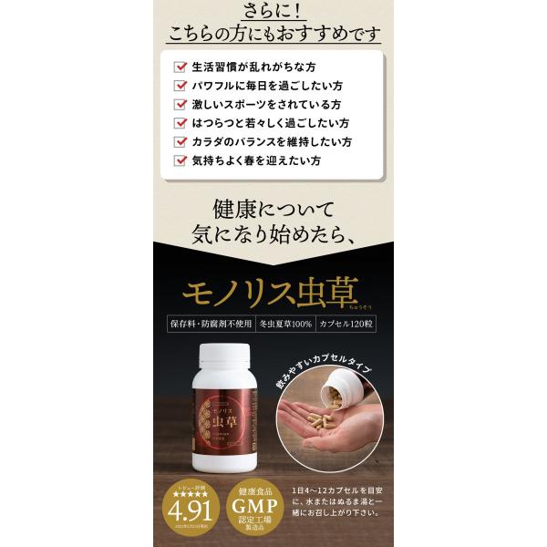 冬虫夏草 サプリ サプリメント 健康食品 日本産 シニア 免活 サポート 活力 の維持 妊活 持続力 キノコ モノリス虫草カプセル 送料無料 爆買