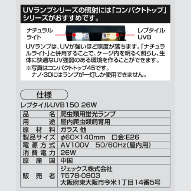 ジェックス レプタイルUVB150 26W PT2189