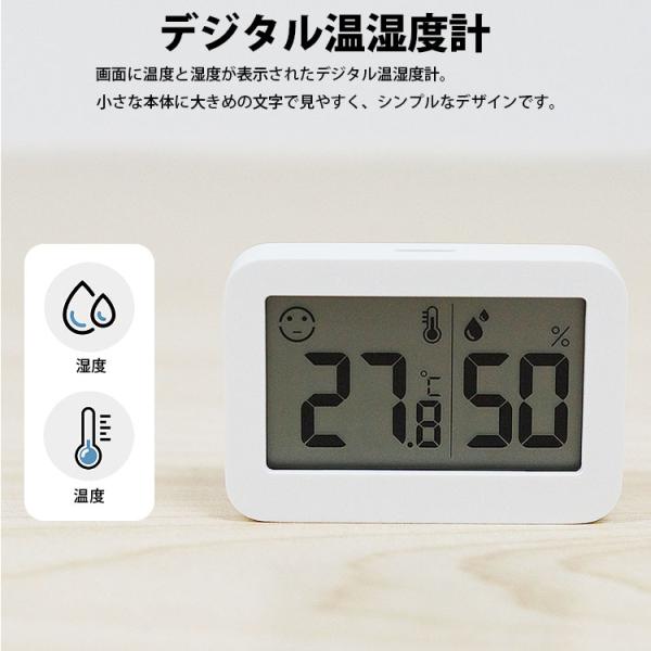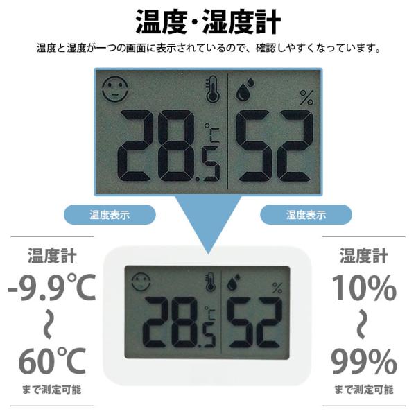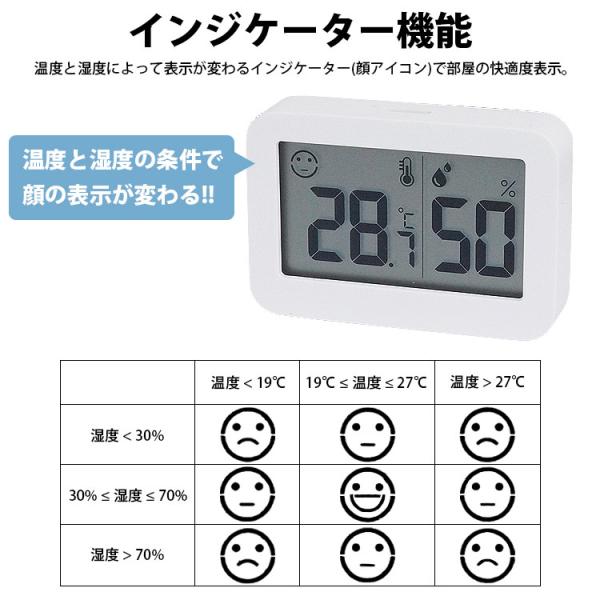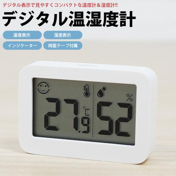 温湿度計 温度計 湿度計 デジタル シンプル デザイン 小型 両面テープ 電池式 卓上 室内計 コンパクト 顔アイコン