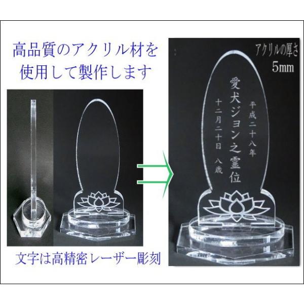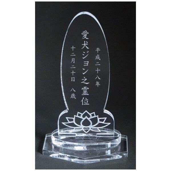 4150Cペットの名前が入るミニアクリル位牌 楕円蓮の花クリアー ペット仏壇 用コンパクトサイズ DOG CATメモリアルプレート