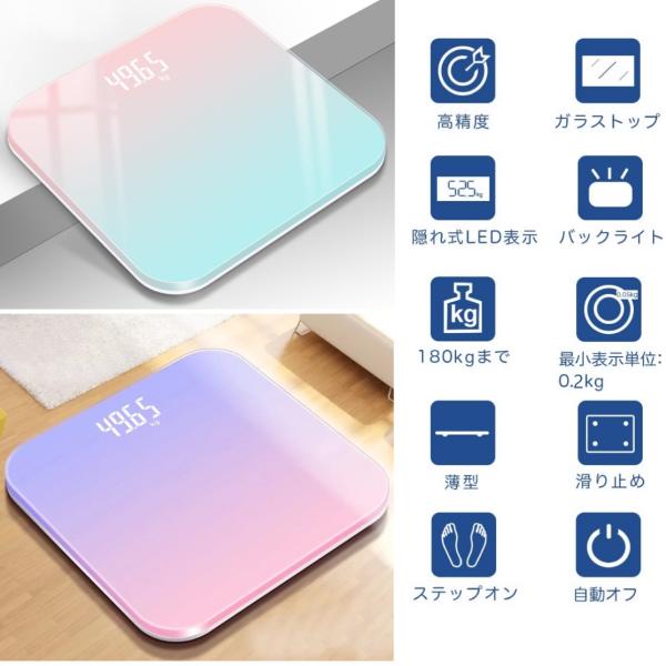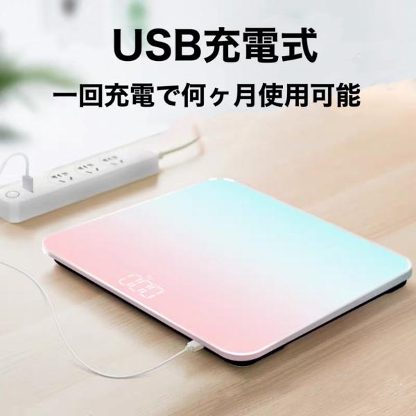 即納 体重計 ヘルスメーター 充電式 デジタル 乗るだけ 電源自動ON/OFF バックライト付 180kgまで対応 高精度 ボディスケール PSE認証済み