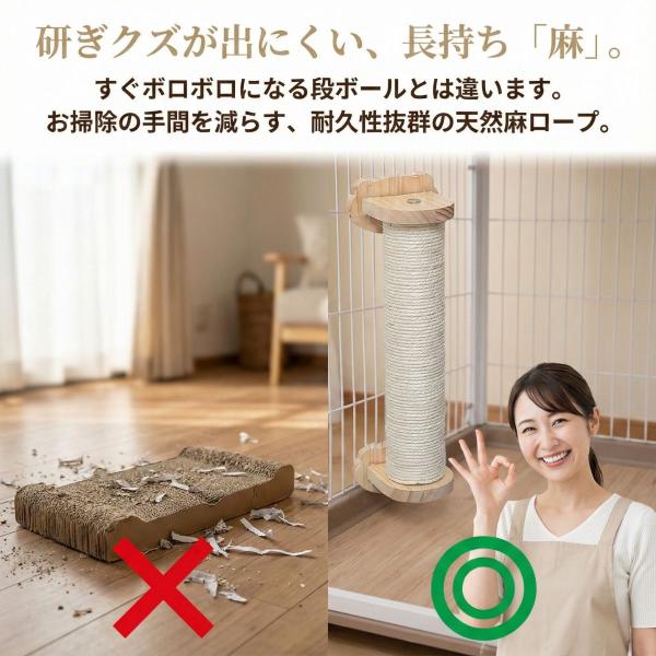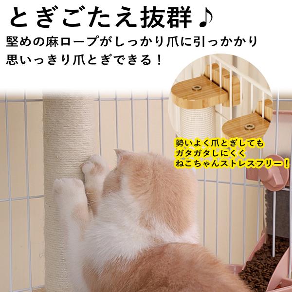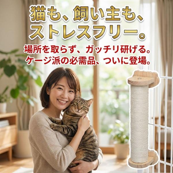 猫 爪とぎ ポール ケージ用 丸型 ロープ 木製 簡単取付 麻紐 おしゃれ つめとぎ やすり効果 縦型 キャットポール シンプル ストレス発散