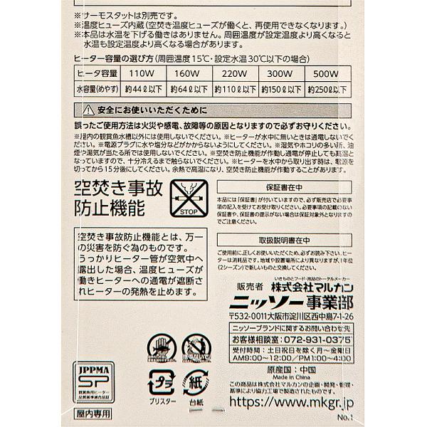 ニッソー プロテクトヒーター R−220W サーモスタット接続用 〜110L以下水槽用 ヒーター アクアリウム 熱帯魚