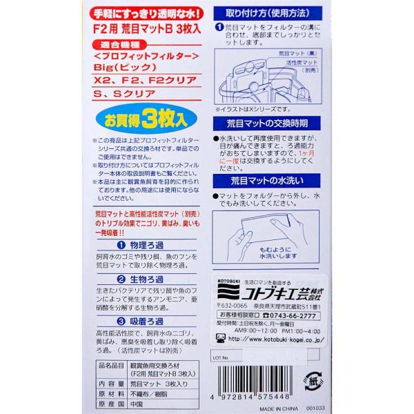 コトブキ工芸 プロフィットフィルターF2/X2用 荒目マットB 3枚入