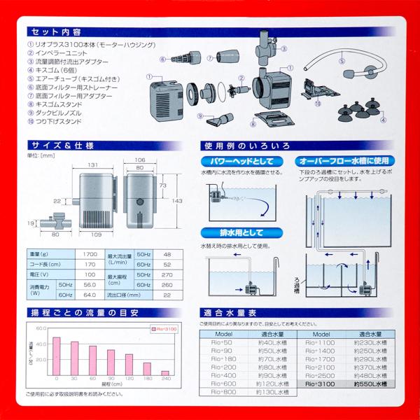 水中ポンプ 60Hz カミハタ Rio+(リオプラス) 3100 流量52リットル/分(西日本用)