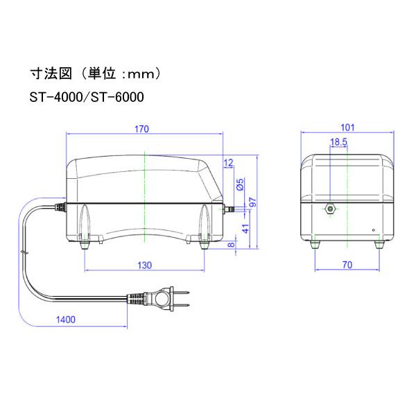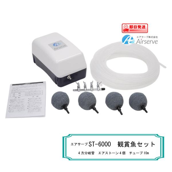 エアサーブ ST-6000【観賞魚セット】4方分岐管+エアストーン4個+シリコンチューブ10m付き! 低騒音・低振動 省エネ 安心の耐久性 100%国内生産 送料無料