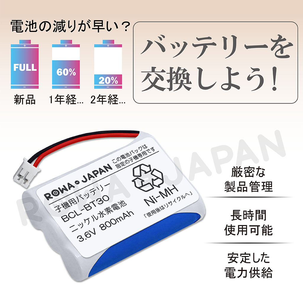 【互換品】 販売数6.7万突破 ブラザー対応 BCL-BT30 パナソニック対応 BK-T403 KX-FAN39 コードレス子機 充電池 ロワジャパン