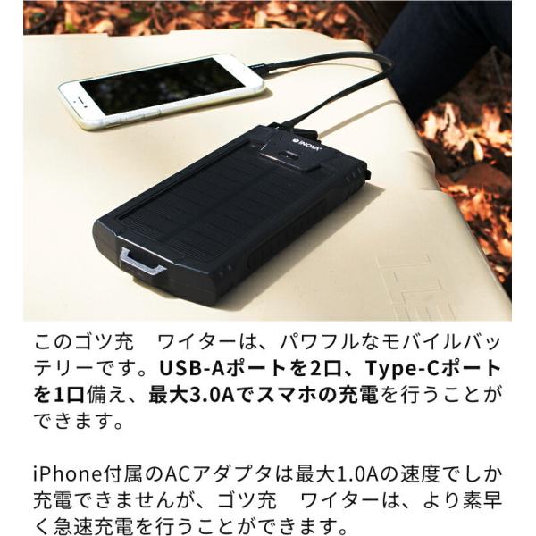 大容量 ソーラー充電器 ゴツ充ワイター ソーラー充電器 大容量 10000mAh モバイルバッテリー ソーラー スマホ 充電器 ソーラーパネル .3R
