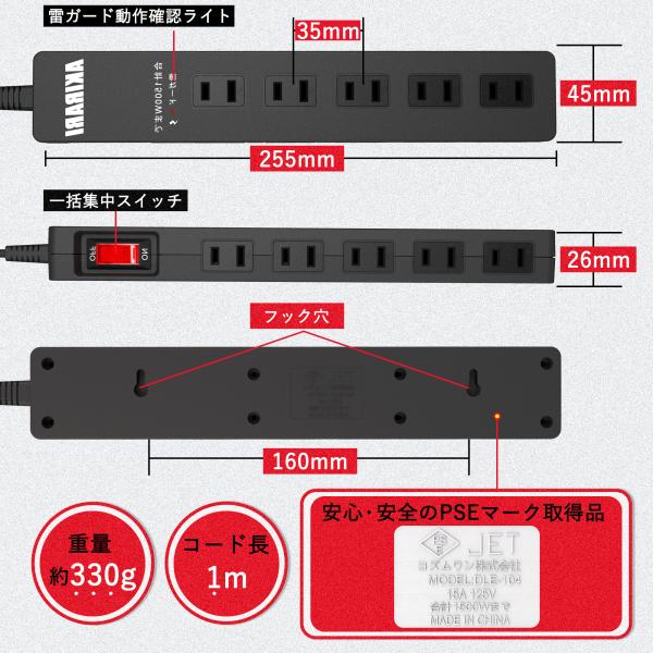 電源タップ コンセント 電源コンセント 10個口 雷ガード 防塵 防雷 ホコリ対策 スイッチ タコ足 コンセントタップ スイングプラグ 節電 PSE認定 ポイント利用