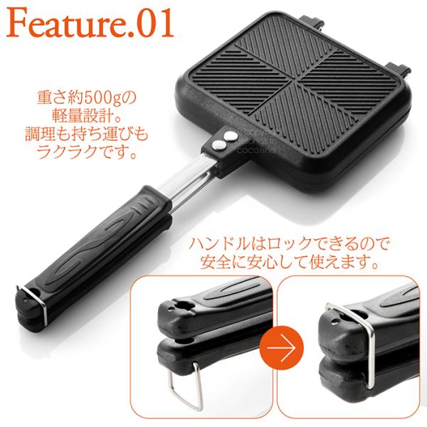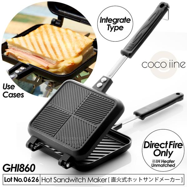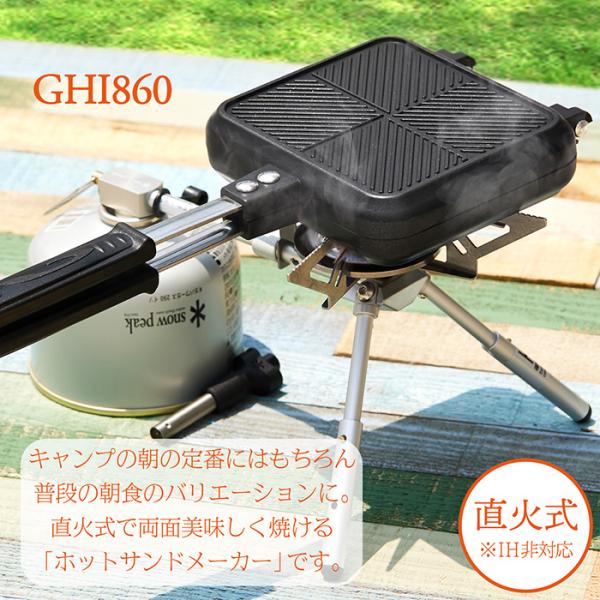ホットサンドメーカー 直火式 ホットサンド フッ素コーティング加工 ハンドルロック 丸洗いOK キャンプ 朝食 一体型 軽量設計 IH非対応 GHI860