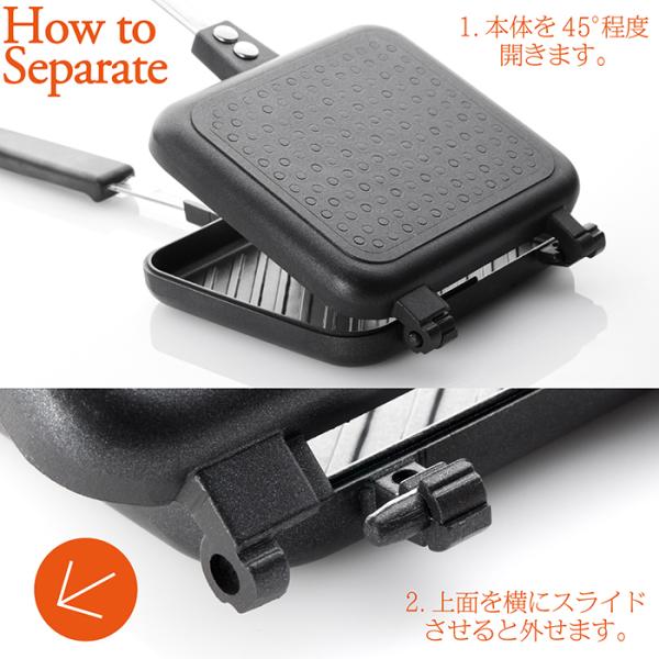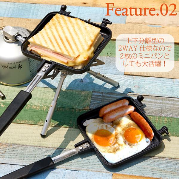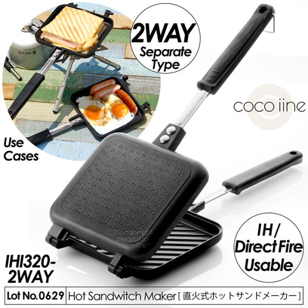 ホットサンドメーカー 直火/IH両用 2WAY 分離型 ホットサンド フッ素コーティング加工 ハンドルロック ミニパン キャンプ 朝食 軽量設計 IHI320-2WAY