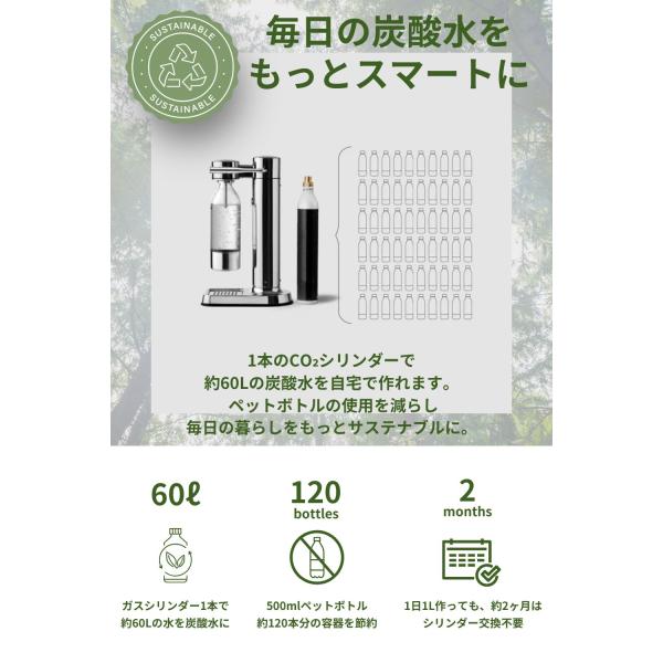 アールケ 炭酸水メーカー aarke カーボネーター 3 【公式】 専用ボトル付 ソーダストリームガスシリンダー対応 公式 国内正規品