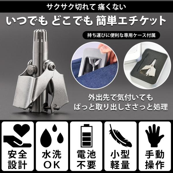 鼻毛カッター 男性 女性 手動 ハナ毛 痛くない 眉毛 耳毛 水洗い エチケットカッター ステンレス 専用ケース ブラシ付き