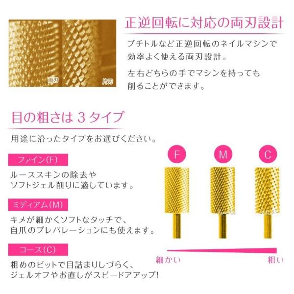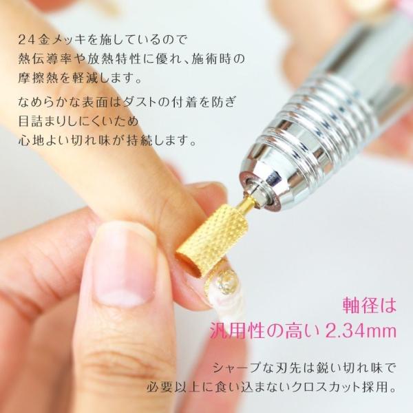ネイルマシン用 アタッチメント ネイルビット 超硬タングステン 24Kメッキ加工 スモールバレル 両刃 シャンク径2.34mm ゴールドビット プチトル