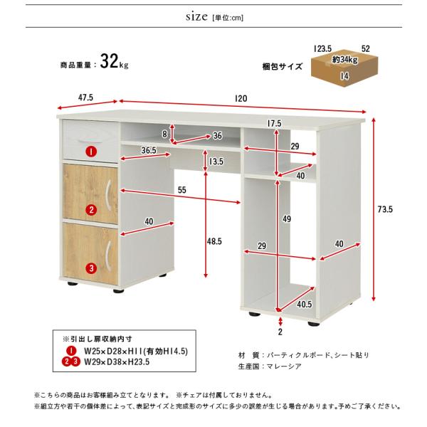 デスク パソコンデスク 学習机 学習デスク システムデスク シンプル おしゃれ モダン 木製 子供 大人 リビングデスク 居間 幅120cm Harissa ハリッサ 3色対応