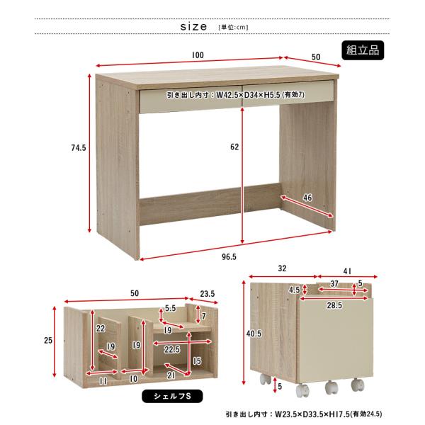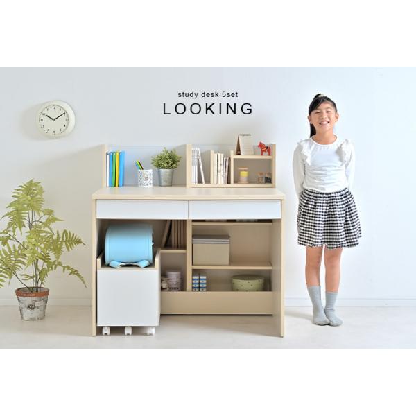 学習机セット 学習机 学習デスク 勉強机 シンプル 収納 木製 コンパクト 子供 おしゃれ デスク収納 白 幅100cm 5点セット LOOKING3 ルッキング3 7色対応