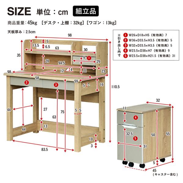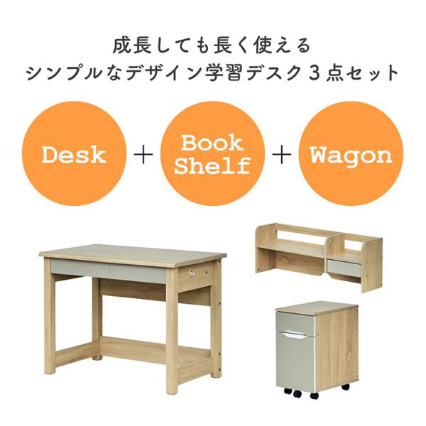 学習机 セット 中学生 シンプル 勉強机 子供 白 大学生 コンパクト ワゴン キャスター付き 収納 2段 スリム 学習デスク Rinork リノーク 2色対応