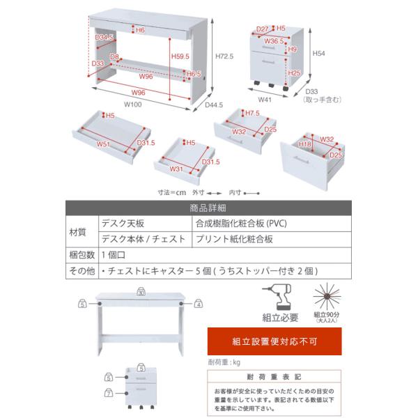 学習机 リビングデスク ワークデスク オフィス リビング 子供部屋 ワゴン 収納 SOHO シンプル フリエル デスク&チェストセット 2点セット SGT-0125 3色対応