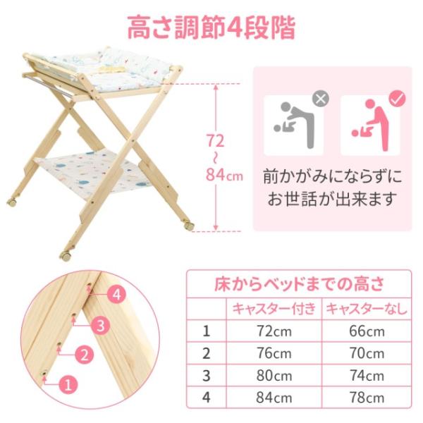 ベビーベッド 折りたたみ 簡易ベッド 赤ちゃん 木製 オムツ替え台 おむつ交換台 おむつ替え台 コンパクト おむつ替えマット 新生児 出産祝い