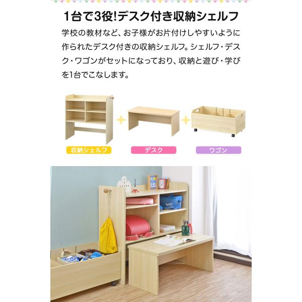 1年保証 RiZKiZ ランドセルラック デスク付き収納 幅90cm×高さ89.5cm ランドセル収納 収納棚 収納シェルフ 収納ラック ランドセル置き デスク付 送料無料