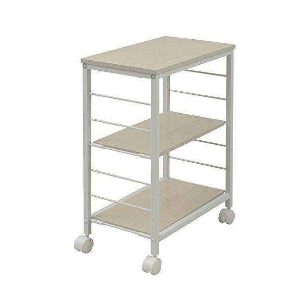 山善 キッチンワゴン 幅30×奥行50×高さ70cm 3段 棚板高さ調節可能 取っ手 ストッパー付きキャスター 手入れしやすい天板 組立品 ナチ