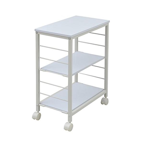 山善 キッチンワゴン 幅30×奥行50×高さ70cm 3段 棚板高さ調節可能 取っ手 ストッパー付きキャスター 手入れしやすい天板 組立品 ホワ